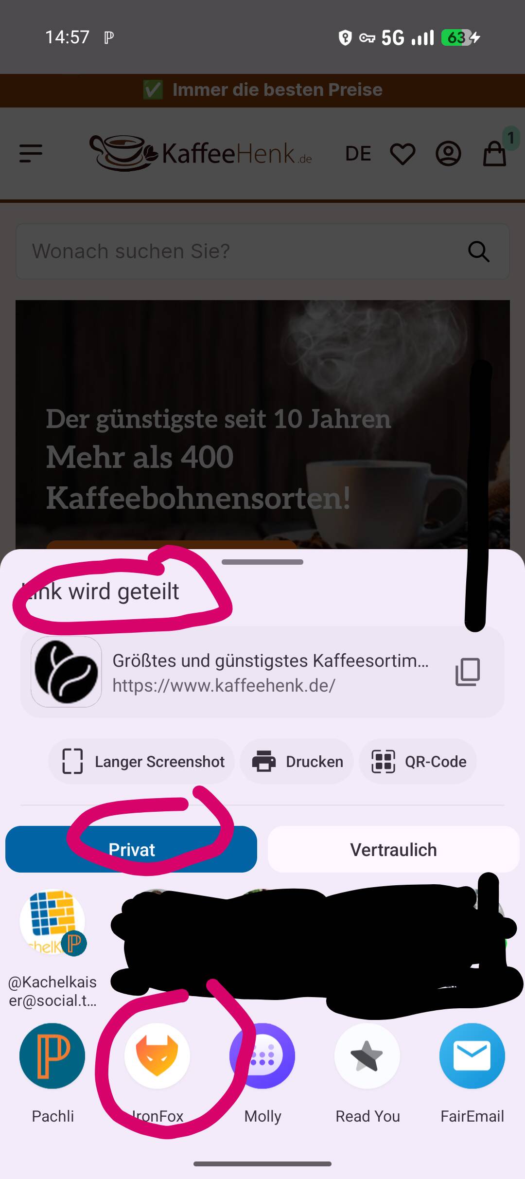 Auch die andere Variante für unterschiedliche Thematiken unterschiedliche Profile anzulegen, ergibt für mich keinen Sinn. Wenn ich z. B. Google Maps in ein anderes Profil verfrachte und die Messenger in ein anderes, hab ich die gleiche Problematik, wie öffne ich z. B. den Standortlink aus Signal heraus?