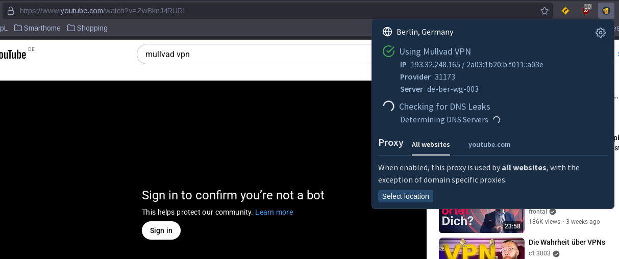 YouTube (über FreeTube auf dem Desktop bzw. Tubular auf dem Smartphone) blockt allerdings Mullvad IPs, also nutze ich dafür mein Selbstbau-VPN. Damit gehe ich aber nicht mehr in der Masse unter, da ja nur ich diese IP nutze und das ständige Hin-und-Her-Wechseln nervt natürlich.