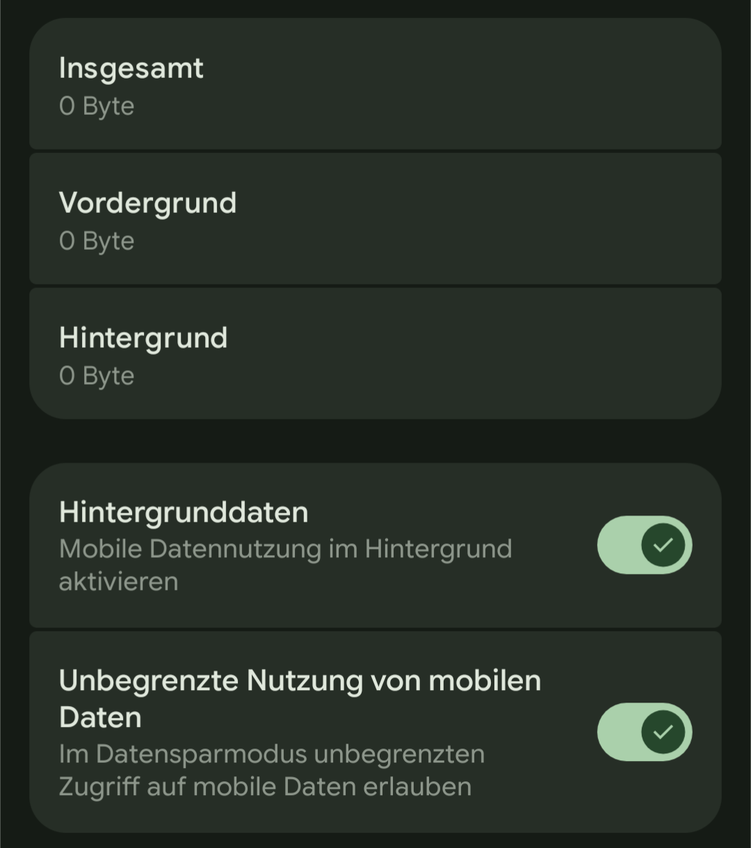 @Karo Die Einstellung war aber nicht gemeint (da gehts ja um den Akkuverbrauch, nicht um die Netzwerknutzung). GrapheneOS hat da wohl in den Berechtigungen eine Einstellung und Lineageoide Betriebssysteme haben unter Mobile Datennutzung mehr Optionen, wobei ich mich eigentlich auch an Stock-Geräte erinnere, die so etwas haben: