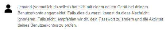 Mir ist der Sinn dieser Nachfrage unklar. Denn da ich mich via E-Mail-Code zusätzlich legitimiert habe, bin ich Herr über das Postfach, das zu diesem Account hinterlegt ist. Wenn jemand (zB ein Hacker) ein fremdes Login und das zugehörige Postfach unberechtigt nutzt, dann wird er auch die Nachfrage ignorieren oder gar löschen (für den Fall, falls der rechtmäßige Nutzer ebenfalls noch Zugriff hat). Für mich ist die Nachfrage kein Beitrag zu mehr Sicherheit und damit lästig.
